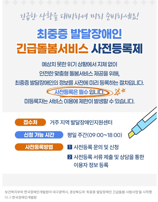 【에이블뉴스】대구·경북서 '최중증 발달장애인 긴급돌봄 시범사업' 시작 | 관리자 | 45 | 2025-09-19 |